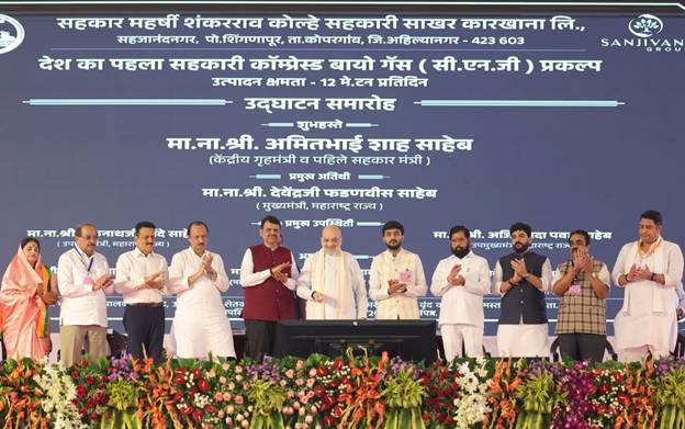 नई दिल्ली : रविवार, अक्टूबर 5, 2025/ केन्द्रीय गृह एवं सहकारिता मंत्री अमित शाह ने आज महाराष्ट्र के अहिल्यानगर जिले के कोपरगाव में देश के पहले सहकारी मल्टी-फ़ीड कंप्रेस्ड बायोगैस(CBG) प्लांट का उद्घाटन किया। इस अवसर पर महाराष्ट्र के मुख्यमंत्री देवेन्द्र फड़णवीस, उप-मुख्यमंत्री एकनाथ शिंदे और अजित पवार, केन्द्रीय सहकारिता राज्य मंत्री मुरलीधर मोहोल सहित अनेक गणमान्य व्यक्ति उपस्थित थे।