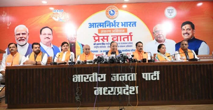 भोपाल : मंगलवार, अक्टूबर 14, 2025/ भारतीय जनता पार्टी के राष्ट्रीय महासचिव, सांसद व आत्मनिर्भर भारत संकल्प अभियान के राष्ट्रीय संयोजक अरुण सिंह ने मंगलवार को प्रदेश कार्यालय में पत्रकार-वार्ता को संबोधित किया। उन्होंने आत्मनिर्भर भारत संकल्प अभियान को लेकर कहा कि प्रधानमंत्री नरेंद्र मोदी हमेशा इस बात पर चिंतन करते हैं कि देश कैसे आत्मनिर्भर बने। उनका कहना है कि हम आत्मनिर्भर भारत के माध्यम से ही विकसित भारत के संकल्प को साकार करेंगे। प्रधानमंत्री के आह्वान पर ही स्वदेशी का यह अभियान देश भर में चलाया जा रहा है और पार्टी के कार्यकर्ता समाज के साथ मिलकर इस अभियान को एक जनआंदोलन बनाने के लिए काम कर रहे हैं। आत्मनिर्भर मध्यप्रदेश ही आत्मनिर्भर भारत का मजबूत स्तंभ है। डबल इंजन सरकारों से आत्मनिर्भर मध्यप्रदेश का संकल्प साकार होगा। घर-घर स्वदेशी का मंत्र हमारी शक्ति के रूप में समूचे विश्व के सामने प्रदर्शित हो, इसी लक्ष्य को लेकर देश-प्रदेश में विभिन्न कार्यक्रमों का आयोजन किया जा रहा है। पत्रकार-वार्ता में भारतीय जनता पार्टी के प्रदेश अध्यक्ष व विधायक हेमंत खण्डेलवाल की गरिमामयी उपस्थिति रही।