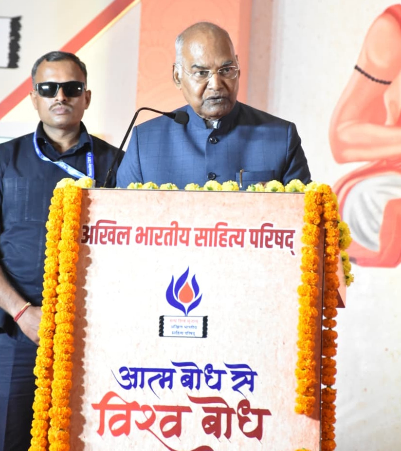 पूर्व राष्ट्रपति कोविंद ने कहा कि जो स्वयं को जान लेता है वही विश्व कल्याण कर सकता है। जब आत्मबोध और आत्मशक्ति क्षीण होने लगती है तब हम पराभव की ओर जाते हैं। ऐसे में राष्ट्र गुलामी की जंजीरों में जकड़ जाता है। देश में सदियों की पराधीनता में भी साहित्य ने बौद्धिक चेतना और सांस्कृतिक मूल्यों का दीप जलाए रखा। स्वाधीनता संग्राम में साहित्य और साहित्यकारों का अतुलनीय योगदान है। स्वाधीनता के बाद देश में विकास की चेतना के लिए भी साहित्य सशक्त माध्यम बना। साहित्य से ही हमें आर्थिक, सांस्कृतिक और बौद्धिक चेतना मिलती है।