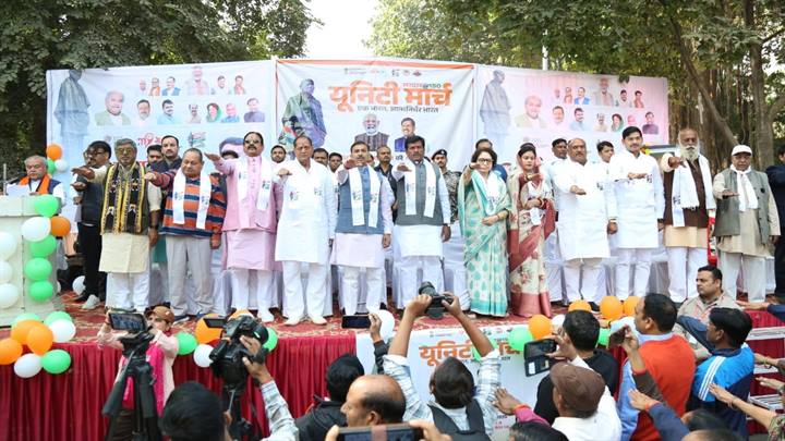 ग्वालियर : रविवार, नवम्बर 9, 2025, 2025/ लौह पुरुष सरदार वल्लभ भाई पटेल की 150वी जयंती के उपलक्ष्य में तीन दिवसीय यूनिटी मार्च पदयात्रा का शुभारंभ विधानसभा अध्यक्ष नरेन्द्र सिंह तोमर के मुख्य आतिथ्य एवं क्षेत्रीय सांसद भारत सिंह कुशवाह की विशेष उपस्थित में प्रारंभ हुआ।