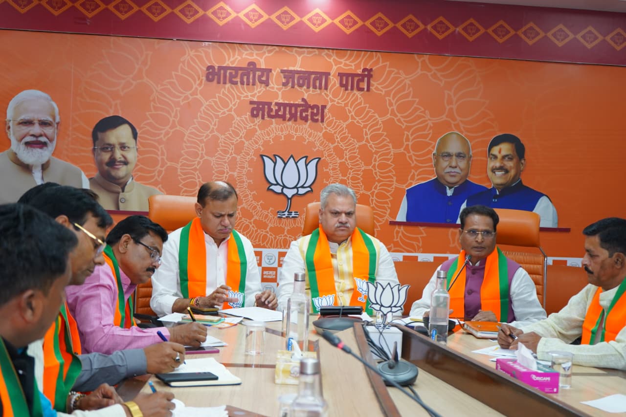 भोपाल : शुक्रवार, मार्च 20, 2026/ भारतीय जनता पार्टी के प्रदेश अध्यक्ष व विधायक हेमंत खण्डेलवाल एवं भाजपा के क्षेत्रीय संगठन महामंत्री अजय जामवाल ने शुक्रवार को भाजपा प्रदेश कार्यालय में अनुसूचित जाति मोर्चा की परिचयात्मक बैठक को संबोधित किया। भाजपा प्रदेश अध्यक्ष हेमंत खण्डेलवाल ने वीडियो कांफ्रेंसिंग से बैठक को संबोधित करते हुए कहा कि भाजपा संगठन को और मजबूत करने समाज में मोर्चा पदाधिकारी सक्रिय भूमिका निभाएं। भाजपा के क्षेत्रीय संगठन महामंत्री अजय जामवाल ने कहा कि अनुसूचित जाति मोर्चा के पदाधिकारी व कार्यकर्ता हर बूथ को जीतने का लक्ष्य लेकर पार्टी संगठन के कार्यों को जन-जन तक पहुंचाएं। बैठक को मोर्चा प्रभारी मनोरंजन मिश्रा व मोर्चा के प्रदेश अध्यक्ष भगवान सिंह परमार ने भी संबोधित किया। इस अवसर पर भाजपा प्रदेश उपाध्यक्ष शैलेन्द्र बरूआ भी उपस्थित रहे।