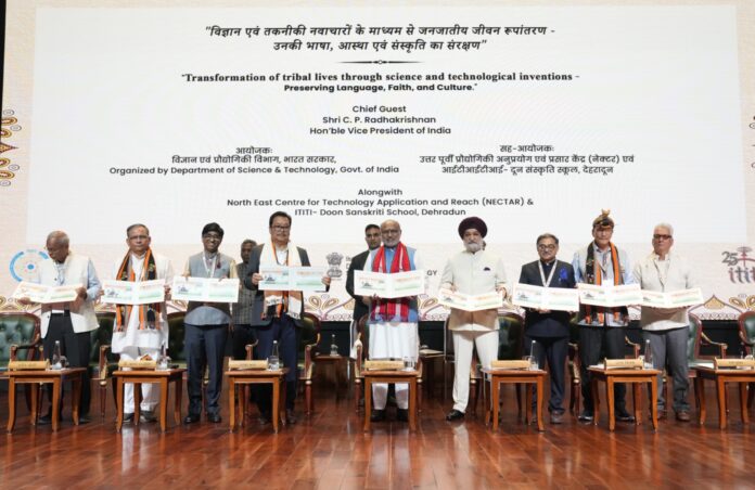 नई दिल्ली : रविवार, अप्रैल 12, 2026/ भारत के उपराष्ट्रपति सी.पी. राधाकृष्णन ने आज नई दिल्ली के भारत मंडपम में “विज्ञान और प्रौद्योगिकी उपायों के माध्यम से जनजातीय जीवन में परिवर्तन – भाषा, आस्था और संस्कृति का संरक्षण” सम्मेलन का उद्घाटन किया।
