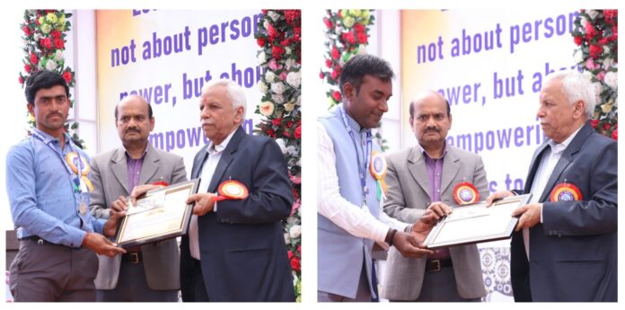 भोपाल : मंगलवार, अप्रैल 21, 2026/ मध्यप्रदेश पॉवर ट्रांसमिशन कंपनी छैगांव में पदस्थ ट्रांसमिशन लाइन मेंटेनेंस स्टॉफ अर्जुन कारले एवं आउटसोर्स कर्मी शिवपाल निकुम को उनके उत्कृष्ट एवं असाधारण कार्य के लिए मुख्यालय जबलपुर में सम्मानित एवं पुरस्कृत किया गया।