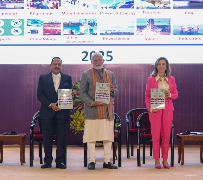नई दिल्ली : बुधवार, जनवरी 15, 2025/ प्रधानमंत्री नरेन्द्र मोदी ने कल नई दिल्ली स्थित भारत मंडपम में भारतीय मौसम विभाग (आईएमडी) के 150वें स्थापना दिवस के अवसर पर आयोजित समारोह में भाग लिया। इस अवसर पर उपस्थित लोगों को संबोधित करते हुए उन्होंने कहा कि आईएमडी के 150 वर्ष न केवल मौसम विभाग की यात्रा को, बल्कि भारत में आधुनिक विज्ञान और प्रौद्योगिकी की गौरवशाली यात्रा को भी दर्शाते हैं। उन्होंने कहा कि आईएमडी ने इन डेढ़ शताब्दियों में लाखों भारतीयों की सेवा की है और यह भारत की वैज्ञानिक प्रगति का प्रतीक बन गया है। प्रधानमंत्री मोदी ने कहा कि आईएमडी की उपलब्धियों के बारे में आज एक स्मारक डाक टिकट और सिक्का भी जारी किया गया। उन्होंने कहा कि वर्ष 2047 में आईएमडी के भविष्य को रेखांकित करने वाला एक विज़न दस्तावेज़ जारी किया गया है। 2047 में भारत स्वतंत्रता के 100 वर्ष मनाएगा। उन्होंने आईएमडी के 150 वर्ष पूरे होने के इस महत्वपूर्ण अवसर पर नागरिकों को बधाई दी।