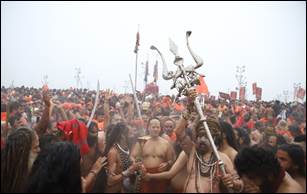 संगम की यात्रा दरअसल कई लोगों के लिए इस पर्व से बहुत पहले ही आरंभ हो गई थी। युवा और बूढ़े तीर्थयात्री अपने सिर पर गठरी लादे मीलों पैदल चलकर वहां पहुंचे जो उनके अटूट विश्वास को दिखलाता है। कुछ लोगों ने रात के समय ही तारों से जगमगाते आसमान के नीचे ठंडे पानी की परवाह न करते हुए पवित्र स्नान शुरू कर दिया। जैसे-जैसे सूरज आसमान पर चढ़ता गया, नागवासुकी मंदिर और संगम क्षेत्र भक्ति के विशाल केंद्र बिंदु बन गए। बुजुर्ग भक्त, महिलाएं और युवा प्रार्थना और पवित्र अनुष्ठानों में भाग लेने के लिए वहां एकत्रित हो गए।