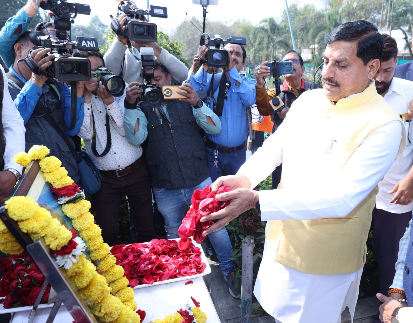 भोपाल : गुरूवार, जनवरी 23, 2025/ मुख्यमंत्री डॉ. मोहन यादव, भाजपा प्रदेश अध्यक्ष व खजुराहो सांसद विष्णुदत्त शर्मा एवं प्रदेश संगठन महामंत्री हितानंद ने गुरुवार को नेताजी सुभाषचंद्र बोस की जंयती पर सुभाष स्कूल 7 नंबर चौराहा स्थित प्रतिमा पर माल्यार्पण कर नमन किया। मुख्यमंत्री डॉ. मोहन यादव ने कहा कि नेताजी सुभाषचंद्र बोस देश के नायक हैं, कदम-कदम पर नेताजी सुभाषचंद्र बोस ने देशभक्ति के नई मिसाल पेश की है। भारतीय जनता पार्टी के प्रदेश अध्यक्ष व खजुराहो सांसद विष्णुदत्त शर्मा ने कहा कि आज देश और युवाओं के लिए ऐतिहासिक दिन है। नेताजी सुभाषचंद्र बोस ने देश की आजादी में महत्वपूर्ण भूमिका निभाई। कांग्रेस ने बाबा साहब अंबेडकर की तरह नेताजी सुभाषचंद्र बोस का भी अपमान किया। प्रधानमंत्री श्री नरेन्द्र मोदी जी ने नेताजी सुभाषचंद्र बोस का सम्मान बढ़ाने का काम किया है।