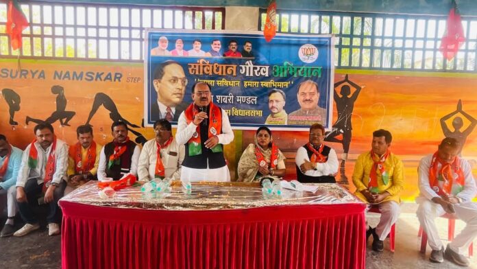 भोपाल : शनिवार, जनवरी 25, 2025/ संविधान गौरव दिवस के अवसर पर दक्षिण-पश्चिम विधानसभा के शबरी मंडल में कार्यक्रम आयोजित किया गया। कार्यक्रम में भाजपा के नेता कार्यकर्ताओं के साथ ही बड़ी संख्या में जनमानस में भाग लिया और डॉ.अंबेडकर के विचारों से अवगत हुए। कार्यक्रम की शुरुआत में भारतीय जनता पार्टी के प्रदेश महामंत्री और दक्षिण-पश्चिम विधानसभा के लोकप्रिय विधायक भगवानदास सबनानी ने डॉ.भीमराव अंबेडकर के चित्र पर माल्यार्पण कर उन्हें नमन किया और संविधान के निर्माण में डॉ.साहब की भूमिका से उपस्थित जनों को अवगत कराया।
