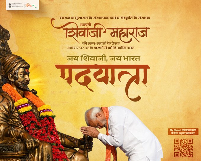 नई दिल्ली : बुधवार, फरवरी 19, 2025/ केंद्रीय युवा मामले एवं खेल तथा श्रम एवं रोजगार मंत्री डॉ. मनसुख मांडविया और महाराष्ट्र के मुख्यमंत्री देवेंद्र फड़णवीस आज छत्रपति शिवाजी महाराज जयंती के अवसर पर महाराष्ट्र के पुणे में 20,000 एमवाई भारत युवा स्वयंसेवकों के साथ ‘जय शिवाजी जय भारत’ पदयात्रा करेंगे। महाराष्ट्र के उप-मुख्यमंत्री अजीत पवार, केंद्रीय युवा मामले एवं खेल राज्य मंत्री रक्षा खडसे, केंद्रीय नागर विमानन राज्य मंत्री मुरलीधर मोहोल सहित राज्य के अन्य मंत्री, सांसद, विधायक/विधान परिषद के सदस्य भी इस पदयात्रा में शामिल होंगे।