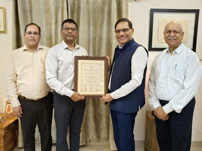 भोपाल : शुक्रवार, फरवरी 28, 2025/ लोकसभा निर्वाचन-2024 के दौरान मध्यप्रदेश में सुचारू और निष्पक्ष चुनाव प्रक्रिया संपन्न हुई। इसे संपन्न कराने में पूर्व पुलिस महानिदेशक सुधीर सक्सेना और आईजी, स्टेट पुलिस नोडल अधिकारी (कानून व्यवस्था एवं सुरक्षा) अंशुमान सिंह की महत्वपूर्ण भूमिका रही। महत्वपूर्ण भूमिका के निर्वहन के लिए पूर्व डीजीपी सक्सेना और आईजी सिंह को भारत निर्वाचन आयोग द्वारा प्रमाण पत्र भेंट कर सम्मानित किया गया। भारत निर्वाचन आयोग द्वारा जारी प्रशंसा-पत्र को मुख्य निर्वाचन पदाधिकारी सुखवीर सिंह द्वारा दोनों अधिकारियों को प्रदान किया गया।