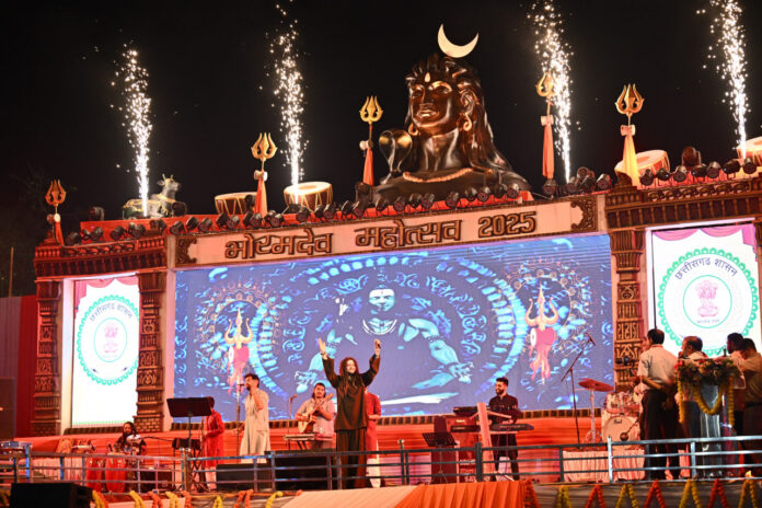 रायपुर : गुरूवार, मार्च 27, 2025/ भोरमदेव महोत्सव का शुभारंभ इस बार एक अद्वितीय और भक्तिमय प्रस्तुति के साथ हुआ, जब अंतर्राष्ट्रीय भजन गायक हंसराज रघुवंशी ने अपनी मधुर आवाज़ और भक्ति गीतों से मंदिर परिसर को मंत्रमुग्ध कर दिया। उनके बाबा भोरमदेव और भोलेनाथ बाबा भजनों ने न केवल भक्तों के दिलों में श्रद्धा और आस्था को और मजबूत किया, बल्कि महोत्सव का धार्मिक और सांस्कृतिक महत्व भी और बढ़ा दिया। मेरा भोला है भंडारी, ऐसा डमरू बजाया भोले नाथ रे, शिव समा रहे मुझमें और मैं शुन्य हो रहा हू, पार्वती बोले शंकर से, युग राम राज का आ गया, सहित अनेक भजनों ने भोरमदेव महोत्सव के वातावरण को एक दिव्य आभा से भर दिया, जिससे श्रद्धालुओं को एक गहरी आध्यात्मिक अनुभूति हुई। रघुवंशी के भक्ति गीतों ने श्रद्धालुओं को शांति और आस्था से भर दिया, और भव्य आयोजन का अहसास कराया। महोत्सव का वातावरण अब भक्तिमय, उल्लासपूर्ण और एक नई ऊर्जा से भरपूर था, जिसमें हर कोने में भक्ति की तरंगें गूंज रही थीं। श्रद्धालु और भक्तगण एक साथ मिलकर इस महोत्सव का आनंद ले रहे थे, जो भक्ति, शांति और समर्पण का सजीव उदाहरण बन चुका था।
