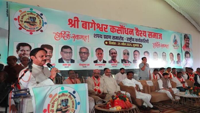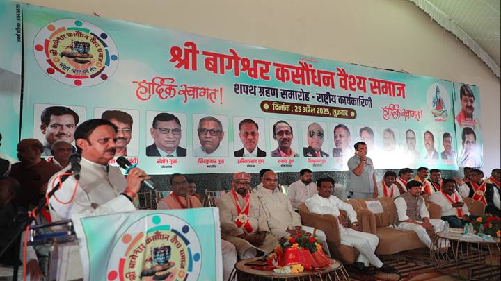 उप मुख्यमंत्री शुक्ल ने कहा कि भगवान शिव के अवतार है बागेश्वर और ऋषि कश्यप के वंशज है, जिनका संबंध कश्मीर से है। बागेश्वर कसौधन वैश्य समाज देशभर में फैला है और यह शिक्षा, स्वास्थ्य के बेहतरी के साथ-साथ सामूहिक विवाह जैसे कार्य भी कर रहा है, जो अनुकरणीय है। उप मुख्यमंत्री शुक्ल ने आगे कहा कि शिक्षा, स्वास्थ्य और बेहतर रोजगार के क्षेत्र में केन्द्र सरकार और राज्य सरकार की कई कल्याणकारी योजनाएं चल रही है। जिसमें आयुष्मान भारत योजना, लाड़ली बहना योजना, मुख्यमंत्री कन्या विवाह योजना, स्टार्टअप योजना आदि शामिल है। इन योजनाओं से समाज लाभान्वित हुआ और उनके जीवन में बदलाव आया। शुक्ल ने कहा कि देश में जितने अधिक रोजगार के अवसर होंगे, भारत उतनी तेजी से आर्थिक महाशक्ति बनेगा। इसमें हर समाज अपनी भूमिका निभायें। शुक्ल ने युवाओं से आह्वान किया कि देश को आगे बढ़ाने में अपनी महत्वपूर्ण भूमिका निभाये और नशे से दूर रहें। साथ ही सामाजिक उत्थान के साथ-साथ धार्मिक उत्थान की दिशा में भी कार्य करें, जिससे सनातन धर्म और मजबूत हो। शुक्ल ने इंदौर के नागरिकों की स्वच्छता के संस्कार की प्रशंसा करते हुए कहा कि देश को स्वच्छ बनाने की पहल प्रधानमंत्री नरेन्द्र मोदी ने की थी, लेकिन बाजी मारी इंदौर ने। इंदौर के नागरिक स्वच्छता के प्रति बड़े सजग है। वे चॉकलेट के रैपर से केले के छिलके तक को सड़क पर नहीं फेंकते। इसी वजह से इंदौर शहर पूरे देश में लगातार सातवीं बार स्वच्छता में नम्बर वन बना हुआ है। यह साधारण बात नहीं। बगैर इच्छा शक्ति के यह संभव नहीं।