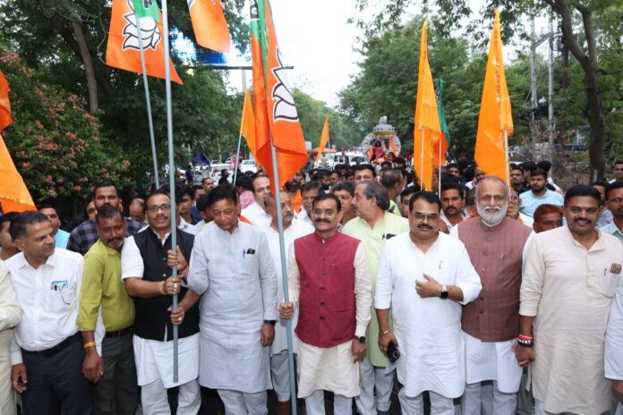 भोपाल : बुधवार, मई 21, 2025/ भारतीय जनता पार्टी के प्रदेश अध्यक्ष व खजुराहो सांसद विष्णुदत्त शर्मा ने बुधवार को देवी अहिल्याबाई होल्कर की 300वीं जयंती के उपलक्ष्य में बुधवार को भोपाल मध्य विधानसभा में आयोजित शोभा यात्रा में शामिल होकर संबोधित किया। भोपाल जिला भाजपा द्वारा आयोजित शोभा यात्रा न्यू कैंपियन स्कूल, ग्यारह सौ क्वार्टर से प्रारंभ होकर देवी अहिल्याबाई होल्कर चौराहे पर संपन्न हुई। देवी अहिल्या बाई होल्कर चौराहे पर उनकी प्रतिमा को पुष्पांजलि अर्पित करने के बाद अपने संबोधन में भाजपा प्रदेश अध्यक्ष व सांसद विष्णुदत्त शर्मा ने कहा कि देवी अहिल्याबाई होल्कर ने अपने शासनकाल में एक आदर्श सुशासन व्यवस्था स्थापित की थी। प्रधानमंत्र नरेन्द्र मोदी देवी अहिल्याबाई होल्कर द्वारा स्थापित सुशासन व्यवस्था को आगे बढ़ा रहे हैं। प्रधानमंत्री नरेन्द्र मोदी के नेतृत्व में केंद्र और मुख्यमंत्री डॉ. मोहन यादव के नेतृत्व में मध्यप्रदेश की भाजपा सरकार देवी अहिल्याबाई के शासन व्यवस्था की तरह महिला सशक्तिकरण के कार्यों में जुटी हैं।