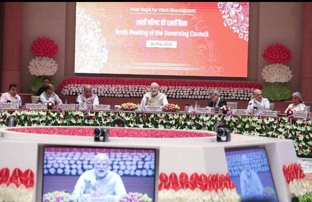 नई दिल्ली : शनिवार, मई 24, 2025/ प्रधानमंत्री नरेन्द्र मोदी ने आज नई दिल्ली के भारत मंडपम में नीति आयोग की 10वीं गवर्निंग काउंसिल की बैठक की अध्यक्षता की। इसमें 24 राज्यों और 7 केन्द्र शासित प्रदेशों के मुख्यमंत्रियों और उपराज्यपालों ने भाग लिया। इस वर्ष का विषय था विकसित भारत@2047 के लिए विकसित राज्य। बैठक की शुरुआत पहलगाम आतंकवादी हमले में मारे गए लोगों की याद में एक मिनट के मौन के साथ हुई।