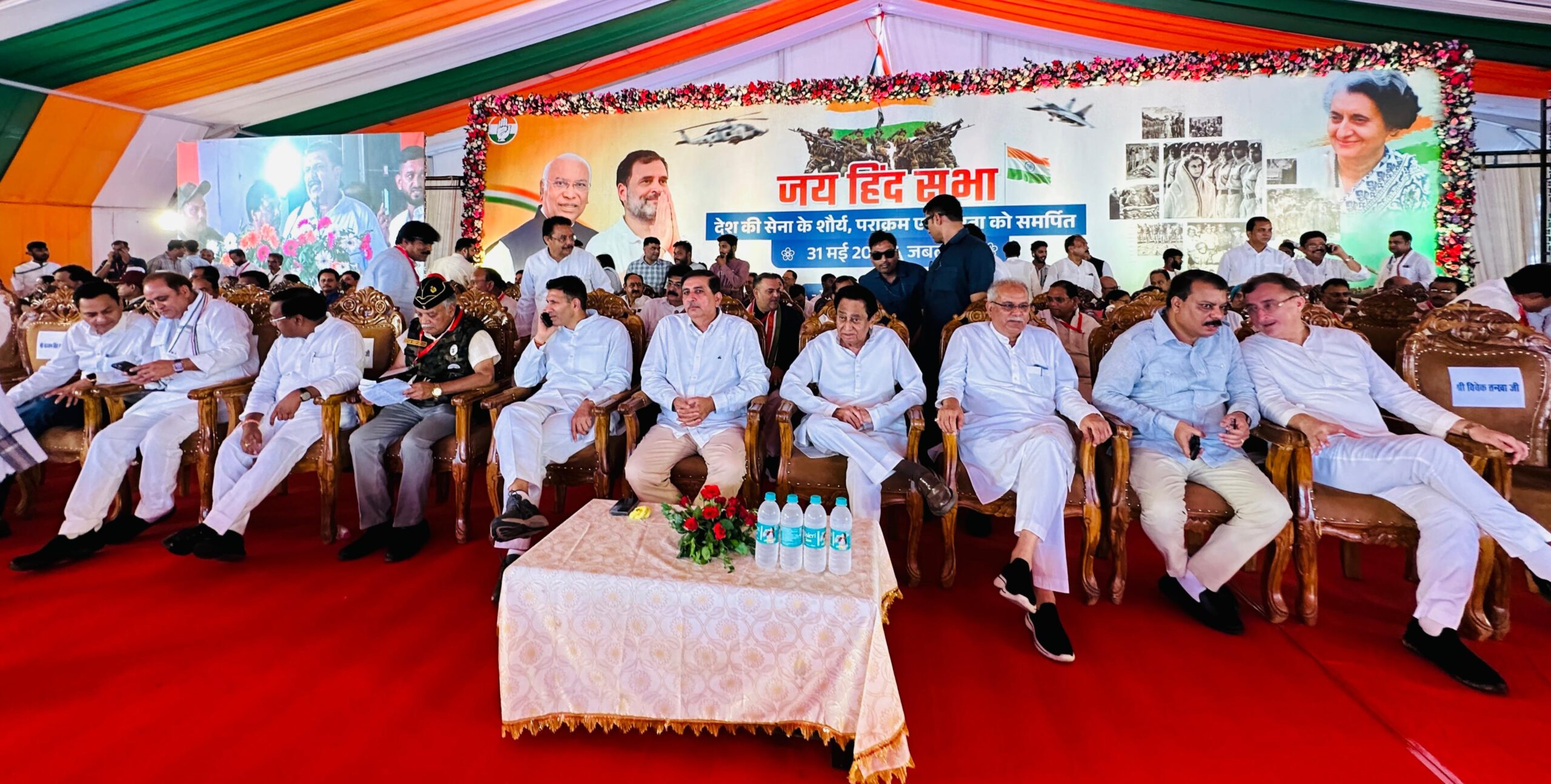 भोपाल : शनिवार, मई 31, 2025/ मध्यप्रदेश के जबलपुर में आज देश की सेना के शौर्य, पराक्रम और वीरता को समर्पित “जय हिन्द सभा” का आयोजन किया गया। कार्यक्रम की शुरुआत से पहले छत्तीसगढ़ के पूर्व मुख्यमंत्री एवं राष्ट्रीय महासचिव भूपेश बघेल और मध्यप्रदेश कांग्रेस अध्यक्ष जीतू पटवारी ने शौर्य स्मारक पहुंचकर शहीदों को श्रद्धांजलि अर्पित की। इस ऐतिहासिक सभा में कांग्रेस के वरिष्ठ नेताओं ने केंद्र सरकार की नीतियों पर जमकर हमला बोला और देश की सेना के सम्मान में एकजुटता का संदेश दिया।