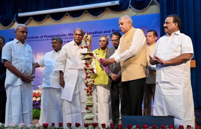 नई दिल्ली : सोमवार, जून 16, 2025/ उपराष्ट्रपति जगदीप धनखड़ ने आज कहा, “आयुष्मान भारत का आशय है कि हमें डॉक्टरों, नर्सों और अर्द्धचिकित्साकर्मियों के रूप में और अधिक मानव संसाधनों की आवश्यकता है। हमें अधिक निदान केंद्रों, दवाओं के लिए और अधिक आउटलेट, व्यापक शोध की आवश्यकता है। हमें सार्वजनिक और निजी दोनों क्षेत्रों में अस्पतालों, स्वास्थ्य सेवा केंद्रों की आवश्यकता है।”